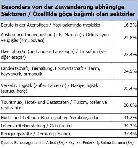 Haziran 2024'te Almanya'da birinci işgücü piyasasında iş ve işçi bulma kurumuna kayıtlı en fazla açık işe ihtiyaç duyulan meslek grupları.